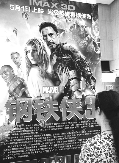 影院《鋼鐵俠3》海報引路人駐足觀看。劉君鳳/CFP