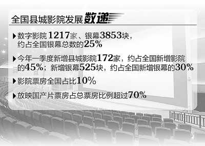 在中小城市電影市場增長的背后,是各地電影院建設的快速推進,特別是縣城影院為國產電影提供了進一步發展的空間。據國家新聞出版廣電總局電影局的統計,截至目前,全國縣城數字電影院的銀幕總數占到全國銀幕總數的25%,其中多廳數字影院約占全國縣城數字影院總數的50%。今年一季度,新增縣城影院172家,約占全國新增影院的45%;全國新增銀幕1744塊,其中約三成在縣城影院。北京、上海等10個省區市已經基本實現縣城數字影院全覆蓋。上述數據表明,長期以來中小城市作為電影供給與消費的“夾心層”狀況正在扭轉。