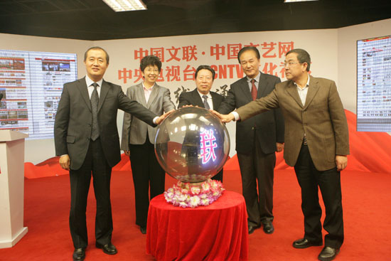 為貫徹落實(shí)黨的十七屆六中全會(huì)精神,發(fā)展健康向上的網(wǎng)絡(luò)文化,推動(dòng)社會(huì)主義文化大發(fā)展大繁榮,建設(shè)社會(huì)主義文化強(qiáng)國(guó),中國(guó)文聯(lián)和中央電視臺(tái)攜手共建中國(guó)文化全媒體傳播平臺(tái),合力推動(dòng)社會(huì)主義文化大發(fā)展大繁榮。11月14日,由中國(guó)文聯(lián)主管主辦、本報(bào)承建的中國(guó)文藝網(wǎng)和中央電視臺(tái)主辦、中國(guó)網(wǎng)絡(luò)電視臺(tái)創(chuàng)建的CNTV(中國(guó)網(wǎng)絡(luò)電視臺(tái))文化社區(qū)上線開(kāi)通儀式在京舉行。