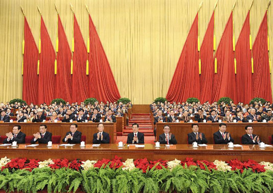 11月22日,中國文學藝術界聯合會第九次全國代表大會、中國作家協會第八次全國代表大會在北京人民大會堂開幕。黨和國家領導人胡錦濤、吳邦國、溫家寶、賈慶林、李長春、習近平、李克強、賀國強、周永康等出席開幕式。新華社記者 劉建生 攝