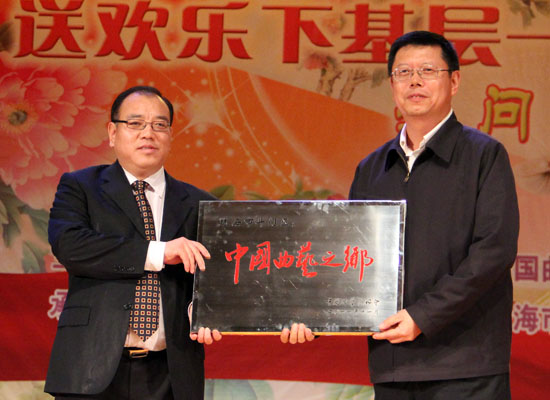 董耀鵬向珠海斗門區授予“中國曲藝之鄉”牌匾。中國藝術報 董大汗 攝