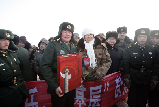 為深入貫徹黨的十七屆六中全會(huì)精神和胡錦濤總書記在九次文代會(huì)上的重要講話精神,落實(shí)中宣部關(guān)于深入開展“走基層、轉(zhuǎn)作風(fēng)、改文風(fēng)”活動(dòng)要求,2011年12月31日至2012年1月3日,中國文聯(lián)組織了2012年中國文聯(lián)“送歡樂、下基層”赴黑龍江邊防線慰問演出采風(fēng)活動(dòng)。在為期3天的慰問演出采風(fēng)活動(dòng)中,采風(fēng)團(tuán)藝術(shù)家分別赴“東方第一哨”和黑瞎子島等地慰問邊防守備部隊(duì),赴同江市赫哲族民族村慰問采風(fēng)。通過慰問演出、創(chuàng)作采風(fēng)、書畫筆會(huì)等形式,為邊防守備部隊(duì)和基層群眾送來了歡聲笑語、真誠祝福和深情厚誼。