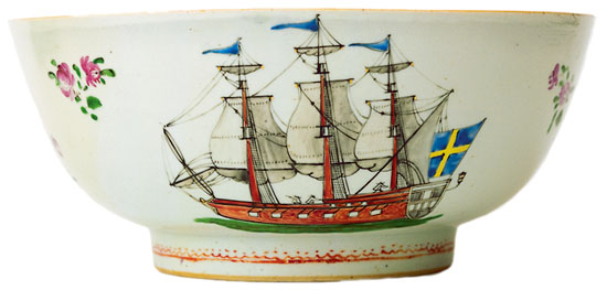 瑞典西方古董公司收藏的清朝乾隆年間粉彩描金帆船紋大碗