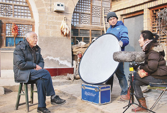 紀(jì)錄片《大魯藝》攝制現(xiàn)場(chǎng):編導(dǎo)劉冰在采訪