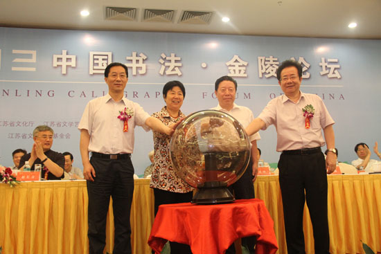 由中國文聯(lián)、江蘇省人民政府主辦,中國書協(xié)、中共江蘇省委宣傳部、江蘇省文化廳、江蘇省文聯(lián)、中共南京市委宣傳部執(zhí)行主辦,南京市浦口區(qū)人民政府、江蘇省書協(xié)、江蘇省文化發(fā)展基金會(huì)承辦的“2012中國書法·金陵論壇”,7月15日在南京市浦口區(qū)拉開帷幕。