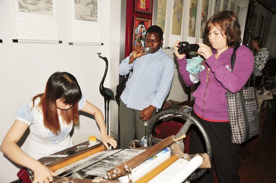 為了增加學生對中國傳統藝術的直觀感受,上課期間,我們還專門組織學生到琉璃廠文化街參觀。