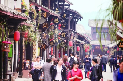 四川崇州街子古鎮(zhèn)人流如織。CFP