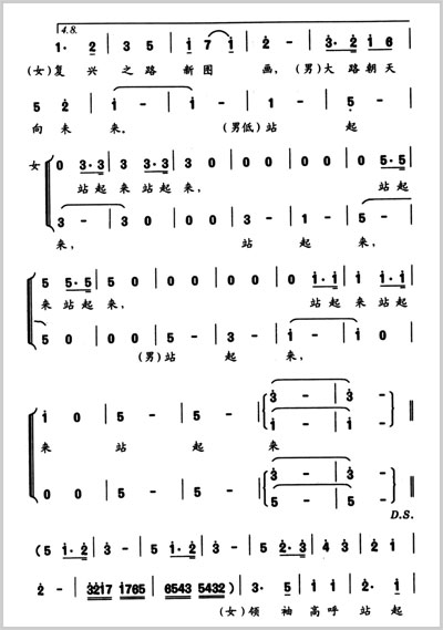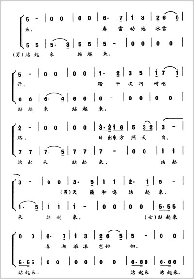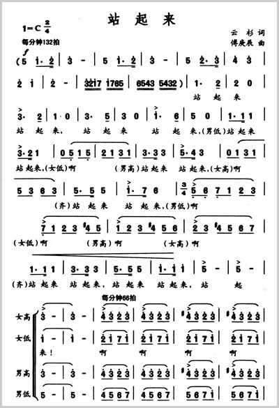 《站起來》這首歌長達200多個小節,織體復雜,音樂技巧運用的也較多,歌詞從歷史寫到未來,具有厚重的歷史感,旋律聽起來給人一種氣勢磅礴的感覺。目前這首歌曲已經在北京、湖南、四川以及東北等地演出過,受到當地觀眾的廣泛好評。
