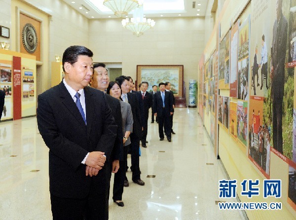 8月29日,中共中央政治局常委、中央書記處書記、國家副主席習近平在北京會見全國組織系統講黨性重品行作表率活動總結會議代表并講話。這是會見與會代表前,習近平參觀“為了黨和人民滿意——全國組織系統講黨性重品行作表率活動專題展”。 新華社記者 李濤 攝