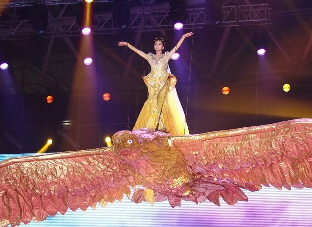 開(kāi)幕式晚會(huì)上,之前充滿懸念的金鷹節(jié)形象代言人——“金鷹女神”揭曉,演員劉詩(shī)詩(shī)身著一襲金色長(zhǎng)裙,腳踏巨型“金鷹”模型,緩緩“飛”向觀眾,將晚會(huì)現(xiàn)場(chǎng)氣氛推向首個(gè)高潮。孫楠、蕭敬騰、李宇春、蔡國(guó)慶、畢福劍等登臺(tái)獻(xiàn)唱,趙忠祥、倪萍寄語(yǔ)電視事業(yè)接班人承前啟后、奮斗不止,2012年倫敦奧運(yùn)冠軍孫楊獻(xiàn)唱《泳動(dòng)》贏得滿堂喝彩。