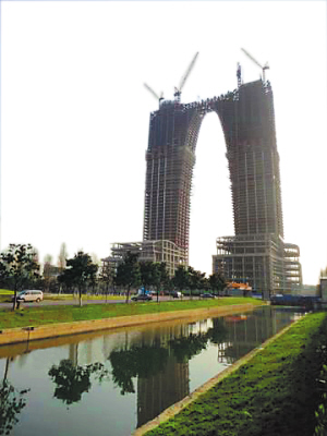 近日,一位網(wǎng)友將蘇州正在建設中的“東方之門”照片上傳到微博,這座超過300多米高的摩天大樓立刻引來如潮的圍觀,引爆起網(wǎng)友們豐富的想象力。一些人甚至調侃其造型“就像一條秋褲”。有人則從專業(yè)角度認為這種設計非常丑陋,與周邊建筑的風格格格不入。一些搜索引擎甚至將其設為熱搜詞。