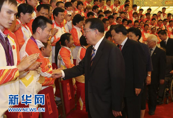 下午3時(shí)30分許,李長春等領(lǐng)導(dǎo)同志來到人民大會(huì)堂,與代表團(tuán)成員親切握手,并合影留念。在熱烈的掌聲中,李長春發(fā)表了熱情洋溢的講話。他說,在這屆殘奧會(huì)上,我國體育健兒發(fā)揚(yáng)“自強(qiáng)不息、奮勇爭先”的殘疾人體育精神,創(chuàng)造了優(yōu)異成績,譜寫了我國殘疾人體育事業(yè)發(fā)展的新篇章,為祖國贏得了巨大榮譽(yù),祖國和人民感謝你們。你們在倫敦殘奧會(huì)賽場上的優(yōu)異表現(xiàn),充分展示了中國殘疾人自尊、自信、自強(qiáng)、自立的良好形象,展示了中國殘疾人事業(yè)和人權(quán)事業(yè)的顯著成就,展示了中華民族昂揚(yáng)向上的精神風(fēng)貌。