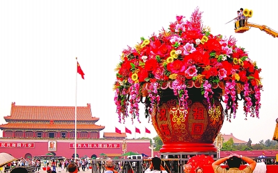 天安門廣場國慶主花壇即將裝飾完成