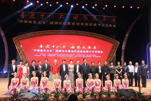 在全國上下喜迎黨的十八大勝利召開、中秋國慶雙節即將到來之際,9月25日,由中國曲協、四川省文聯、遂寧市委市政府主辦的“喜迎十八大 曲藝走基層”中國曲藝之鄉授牌儀式暨送歡笑走進遂寧文藝晚會在遂寧河東會展中心精彩呈現。