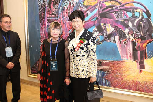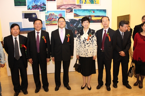 中國文聯黨組書記、副主席趙實與外國藝術家在展覽現場合影 史知元攝