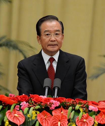 9月29日,國務院在人民大會堂舉行國慶招待會,熱烈慶祝中華人民共和國成立63周年。這是國務院總理溫家寶發表熱情洋溢的講話。新華社記者 馬占成 攝