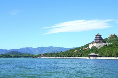 世界文化遺產(chǎn)頤和園中的昆明湖和萬壽山。