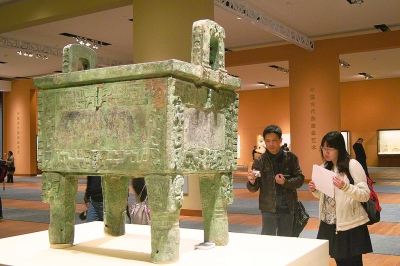 觀眾在國家博物館參觀后母戊鼎。