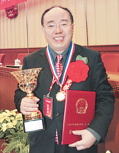 2007年,孟衛(wèi)東在第二屆全國中青年德藝雙馨文藝工作者表彰大會上留影。中國藝術(shù)報記者 孟祥寧 攝