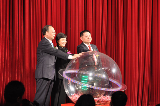 文化部副部長王仲偉與中國文聯(lián)黨組成員、副主席、第三屆中國校園戲劇節(jié)組委會主任楊承志,中共上海市委常委、宣傳部長、第三屆中國校園戲劇節(jié)組委會主任楊振武共同啟動水晶球 高揚 攝