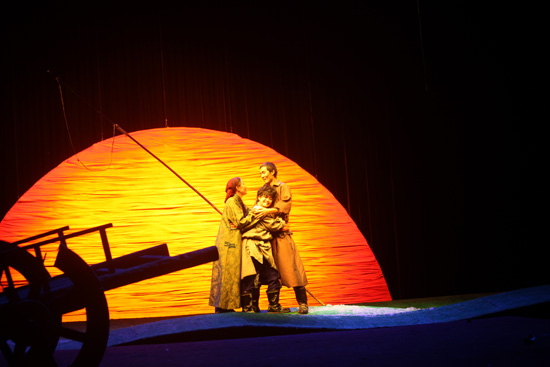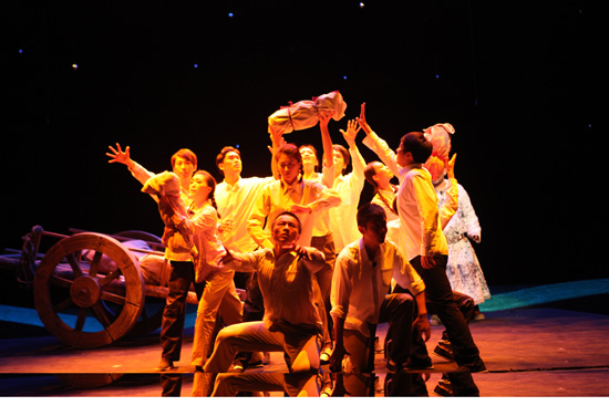 上海戲劇學(xué)院參評劇目《國家的孩子》作為開幕大戲于開幕式后登臺亮相。該劇以上世紀(jì)60年代初共和國遭遇自然災(zāi)害,在黨和國家領(lǐng)導(dǎo)人的關(guān)心和安排下,內(nèi)蒙古草原人民以其寬闊的胸懷,接納和撫育了3000多名南國孤兒的感人故事為背景,詩意地表現(xiàn)了以溫都蘇和嘎魯為代表的一群國家的孩子,在草原養(yǎng)父母的無私幫助下擺脫苦難并獲得幸福的人生經(jīng)歷,歌頌了我國各民族間的骨肉情誼和人世大愛。