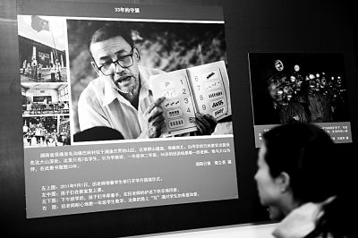 在國家博物館北區寬敞的展覽大廳,一幅幅大照片依次排開,既有記者在新聞現場采訪的風貌,也有記者鏡頭中的生動場景,大廳正中間的大屏幕滾動播放著“走轉改”活動的相關視頻。參展照片真實反映了醫生、鄉村教師、郵差、清潔工等各行各業普通勞動者在一線辛勤工作的情景,用鏡頭呈現了貧困山區、敬老院、社區廣場等地的生活場景。圖片內容豐富多彩,拍攝角度各異,吸引了不少群眾前來觀展。觀眾中有白發蒼蒼的老報人,有離退休的老干部、老教師,也有來自全國各地的一線新聞工作者,還有從事生產建設的普通工人……