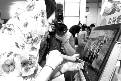 圖為惠安女現場展示影雕技藝。(資料照片)