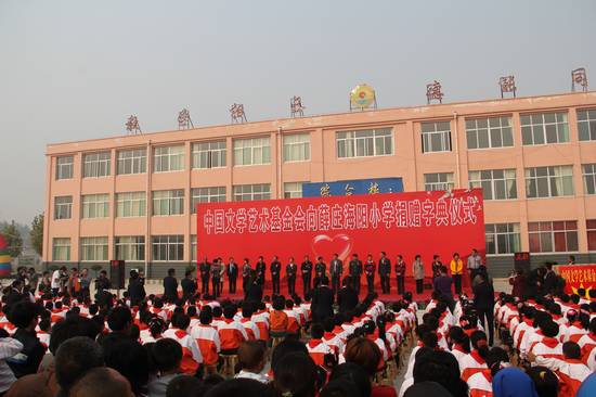 中國文學(xué)藝術(shù)基金會(huì)向薛莊海陽小學(xué)卷鞥字典儀式現(xiàn)場(chǎng) 董大汗攝