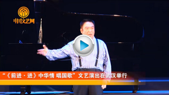 這就是10月27日在武漢緊緊抓住了現(xiàn)場千余名觀眾心靈的“《前進·進》中華情·唱國歌”文藝演出。演出由中國文聯(lián)、武漢市政府、田漢基金會聯(lián)合主辦。演出當天,中國文聯(lián)黨組成員、書記處書記夏潮和武漢市有關部門領導都到場觀看。可以說,整臺演出非常樸素,因為舞臺沒有奢華的背景,沒設置LED大屏幕,沒安排令人眼花繚亂的現(xiàn)場特技;但又可以說,整臺演出非常華麗,因為蘇叔陽、李羚、殷秀梅、王潔實、黃華麗、石維堅、董懷玉、張晶、曹燦、馬梅等眾多國家一級演員傾情加盟,令整個舞臺群星閃耀、熠熠生輝。