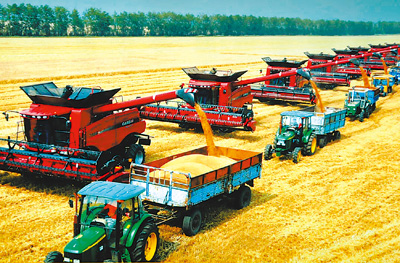 黑龍江農墾國家級現代農業示范區小麥喜獲豐收。