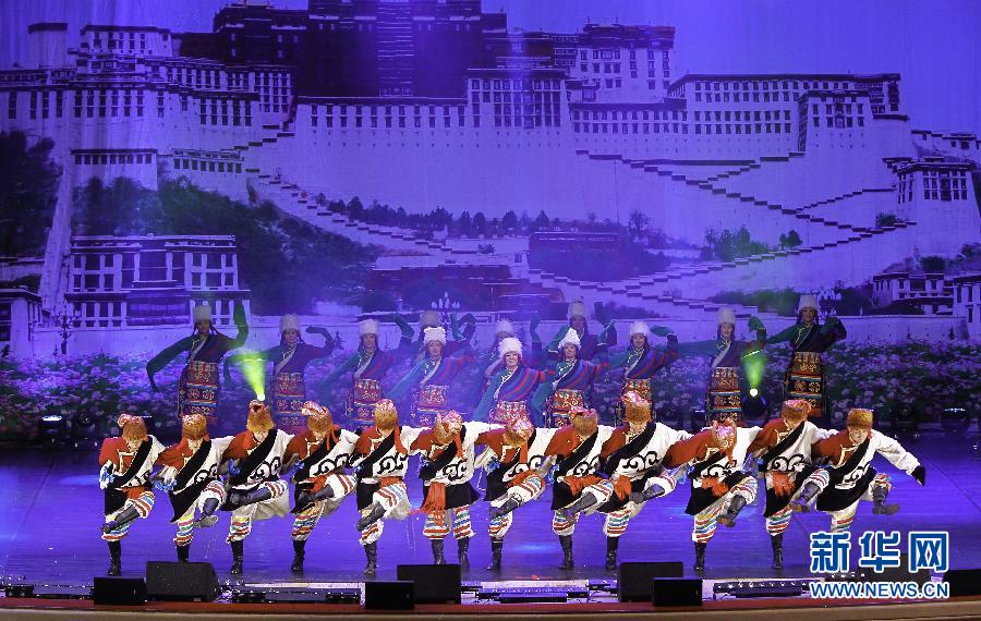 11月5日,在波蘭首都華沙,演員在“魅力西藏”歌舞晚會上表演民族舞蹈。當日,“2012波蘭·中國西藏文化周”在波蘭首都華沙隆重開幕。此次中國西藏文化周將通過“雪域風采”圖片展覽、“魅力西藏”歌舞表演、“傾聽西藏”藏學家藏醫學家交流活動等形式,展現西藏悠久豐富的民族文化和獨具特色的風土人情以及西藏經濟社會發展和各族人民安居樂業的生動景象。新華社記者周磊攝