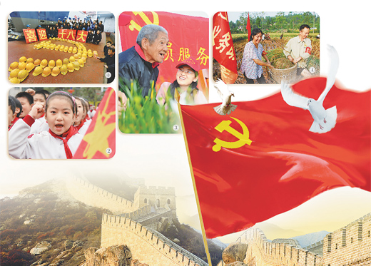 圖①:河南鄭州鐵路職工喜迎十八大。祝慶攝