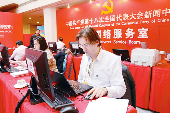 十八大新聞中心成了名副其實的中外“記者之家”
