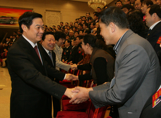 11月27日,中國(guó)曲藝家協(xié)會(huì)第七次全國(guó)代表大會(huì)在京開(kāi)幕。中共中央政治局委員、中央書(shū)記處書(shū)記、中宣部部長(zhǎng)劉奇葆(左一)親切接見(jiàn)與會(huì)代表。中國(guó)藝術(shù)報(bào)記者 孟祥寧 攝