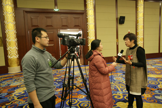 12月3日,中國電視藝術家協會第五次全國代表大會在京召開。圖為中國文藝網記者現場采訪于丹。