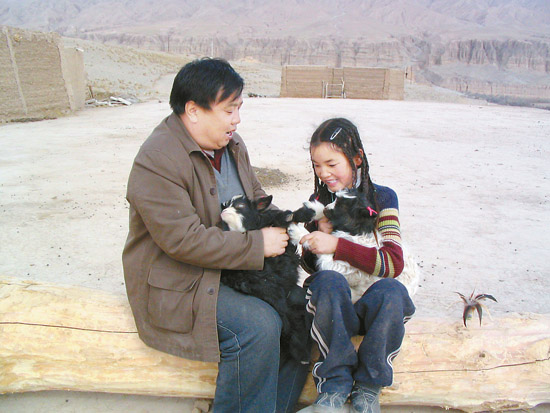 孫勝年在興海縣下鄉時與當地孩子在一起