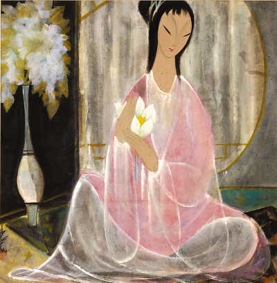 林風(fēng)眠中國畫《蓮花仕女》,上海美術(shù)館藏品。