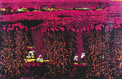 晁楣版畫《北方九月》,黑龍江省美術(shù)館藏品。