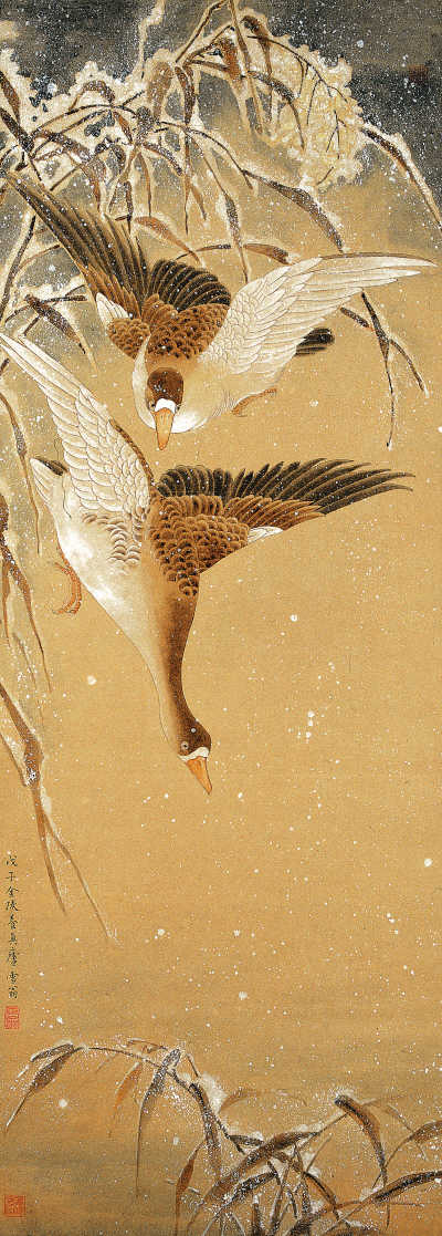 陳之佛中國畫《蘆雁》,江蘇省美術(shù)館藏品。