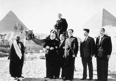 1957年,郭沫若率中國代表團出席在埃及開羅舉行的亞非團結大會,會后在金字塔前留影。
