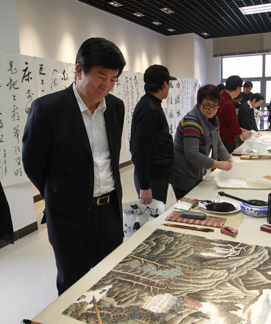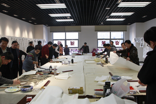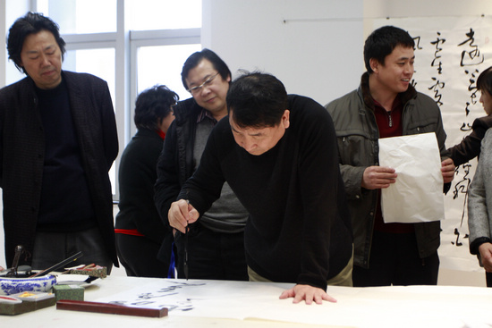 12月26日,中國文聯職工迎新筆會在中國文聯文藝家之家舉行。中國文聯黨組副書記、副主席覃志剛、李屹,中國文聯黨組成員、副主席楊承志、左中一,中國文聯黨組成員、書記處書記李前光出席新春筆會。覃志剛與姜昆、李培雋、陳洪武、邵志軍、吳濤毅等中國文聯干部職工在筆會上揮毫潑墨,創作出多幅慶祝“十八大”勝利閉幕的書法作品。元旦、春節雙節臨近,大家還創作作品抒寫了對新春的寄語。