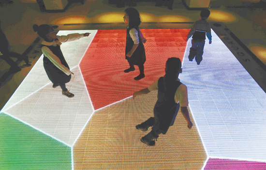 12月17日,在美國紐約國家數學博物館,孩子們在互動裝置上玩耍。