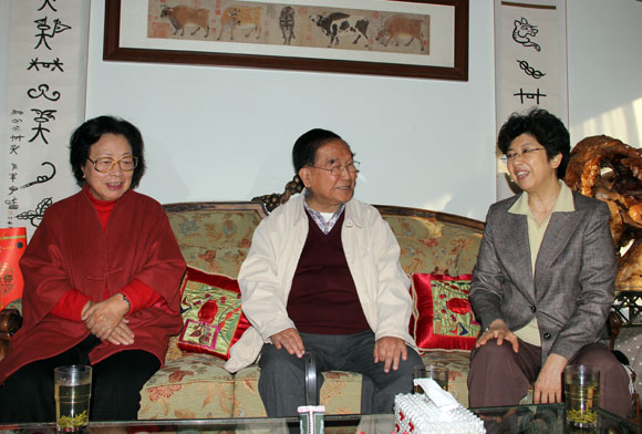 1月24日,中國文聯黨組書記、副主席趙實親切看望了中國文聯名譽主席周巍峙王昆夫婦。賀卡、賀信、慰問金、中國文聯新近出版的一套精品圖書、制作精美的工藝品……二老從趙實手中接過這些滿載著新年祝福的禮物,對中國文聯一直以來的關心表示感謝。趙實介紹了歲末年初中國文聯組織藝術家赴海南三沙為當地漁民和駐島官兵送歡樂的情況,并就目前民族音樂研究方面存在的問題與二老探討。趙實對二老如此高齡依舊如此關注民族音樂發展表示欽佩。她說,去年黨的十八大勝利召開,提出要大力加強文化強國建設,現在中央對文藝事業非常重視,文藝界呈現出大發展大繁榮的景象,希望二老今后繼續關心和支持文藝事業和文聯工作。