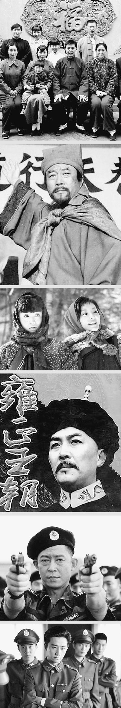 圖為央視“一套”近年來播出的部分“開年大戲”劇照,從上至下依次為:《全家福》、《水滸傳》、《闖關東》、《雍正王朝》、《DA師》、《黎明前的暗戰》。