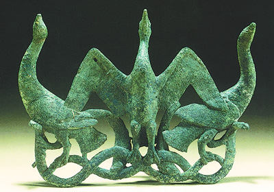 西漢三水鳥銅扣飾,云南省博物館收藏。 王 露攝