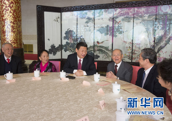 2月23日,中共中央在北京人民大會堂舉行元宵節聯歡晚會。這是習近平總書記在晚會上同知識界知名人士親切交談。 新華社記者 李學仁攝