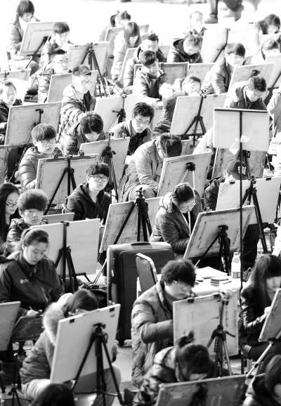 二月的北京乍暖還寒,卻絲毫擋不住藝考的熱度。畫夾、樂器、背包、拖箱……年味兒還沒散去,各大藝術院校里紛紛涌入的考生和家長便共同打響了一場“藝考攻堅戰”。