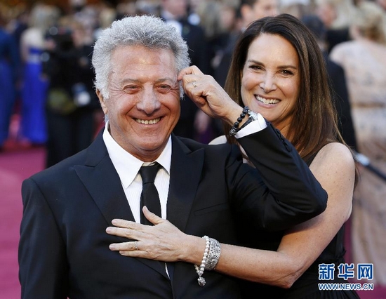2月24日,在美國好萊塢舉行的第85屆奧斯卡獎頒獎典禮開始前,美國影星達斯汀·霍夫曼(左)與妻子莉薩·戈特塞根亮相紅地毯。當天,第85屆奧斯卡頒獎典禮在好萊塢舉行。