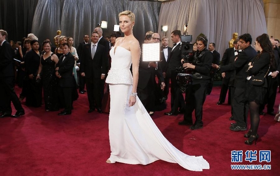 2月24日,在美國好萊塢舉行的第85屆奧斯卡獎頒獎典禮開始前,影星查利茲·塞隆亮相紅地毯。 當天,第85屆奧斯卡頒獎典禮在好萊塢舉行。