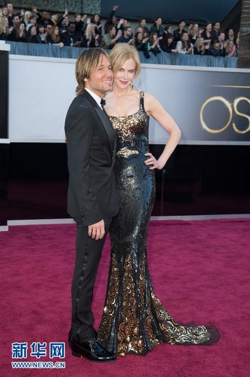 2月24日,在美國好萊塢舉行的第85屆奧斯卡獎頒獎典禮開始前, 澳大利亞女星妮可·基德曼(右)與丈夫凱斯·厄本亮相紅地毯。當天,第85屆在好萊塢舉行。